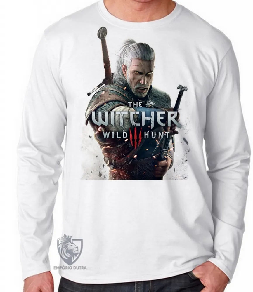 Camiseta manga longa Infantil ou Adulto The Witcher wild hunt jogo game serie seriado