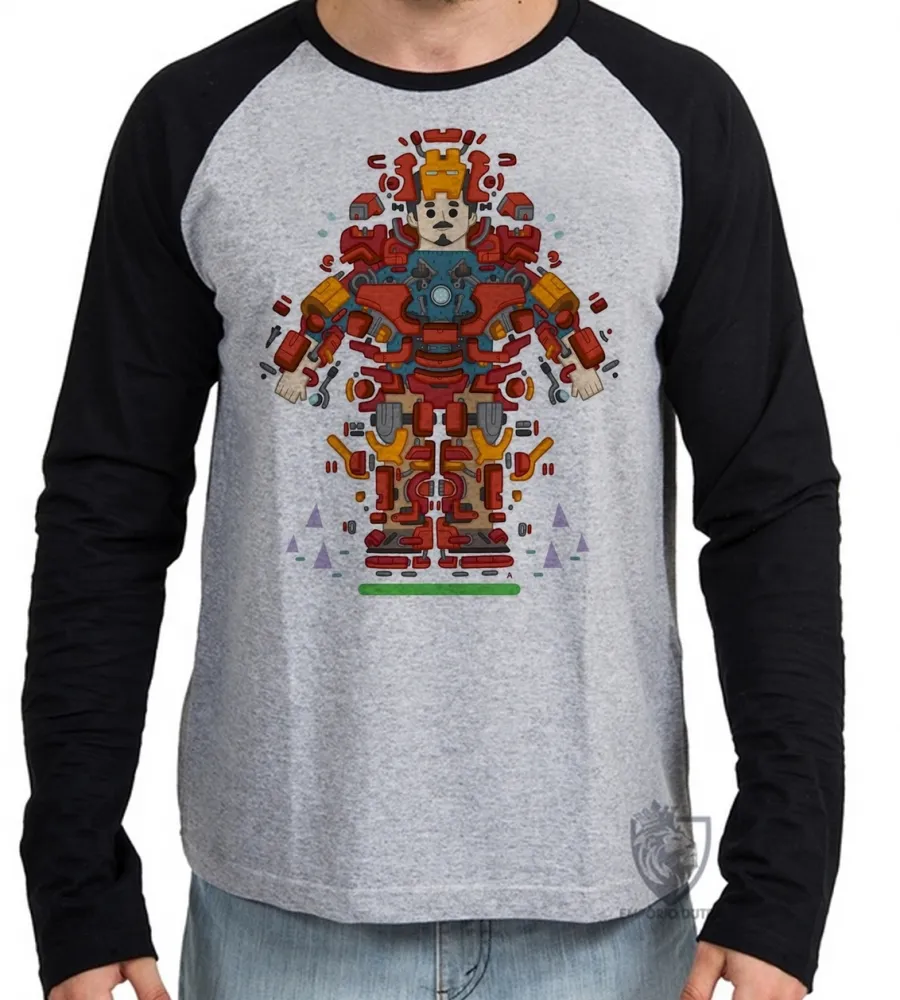 Camiseta manga longa Infantil ou Adulto Tony stark peças homem ferro iron man