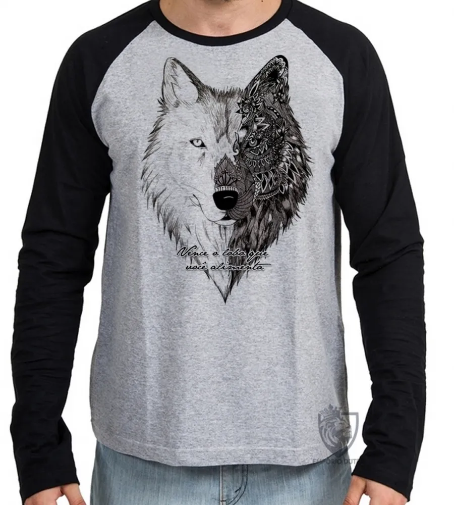 Camiseta manga longa Infantil ou Adulto Vence o lobo que você alimenta cão dog