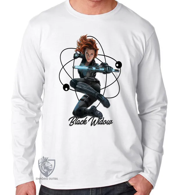 Camiseta manga longa Infantil ou Adulto Viúva Negra vingadores