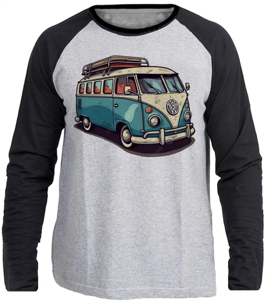 Camiseta manga longa Infantil ou Adulto Volkswagen Kombi corujinha