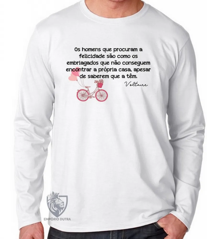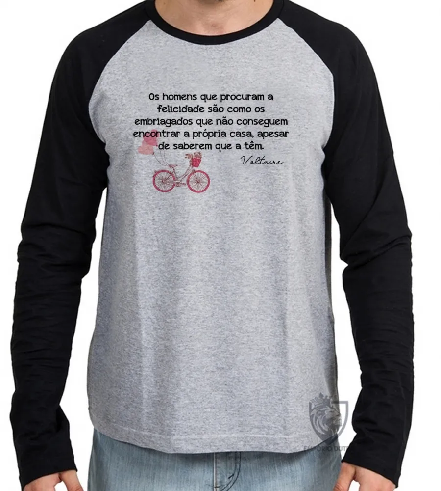 Camiseta manga longa Infantil ou Adulto Voltaire felicidade