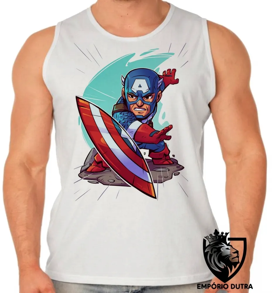 Camiseta Regata adulto ou infantil capitão america geek avengers