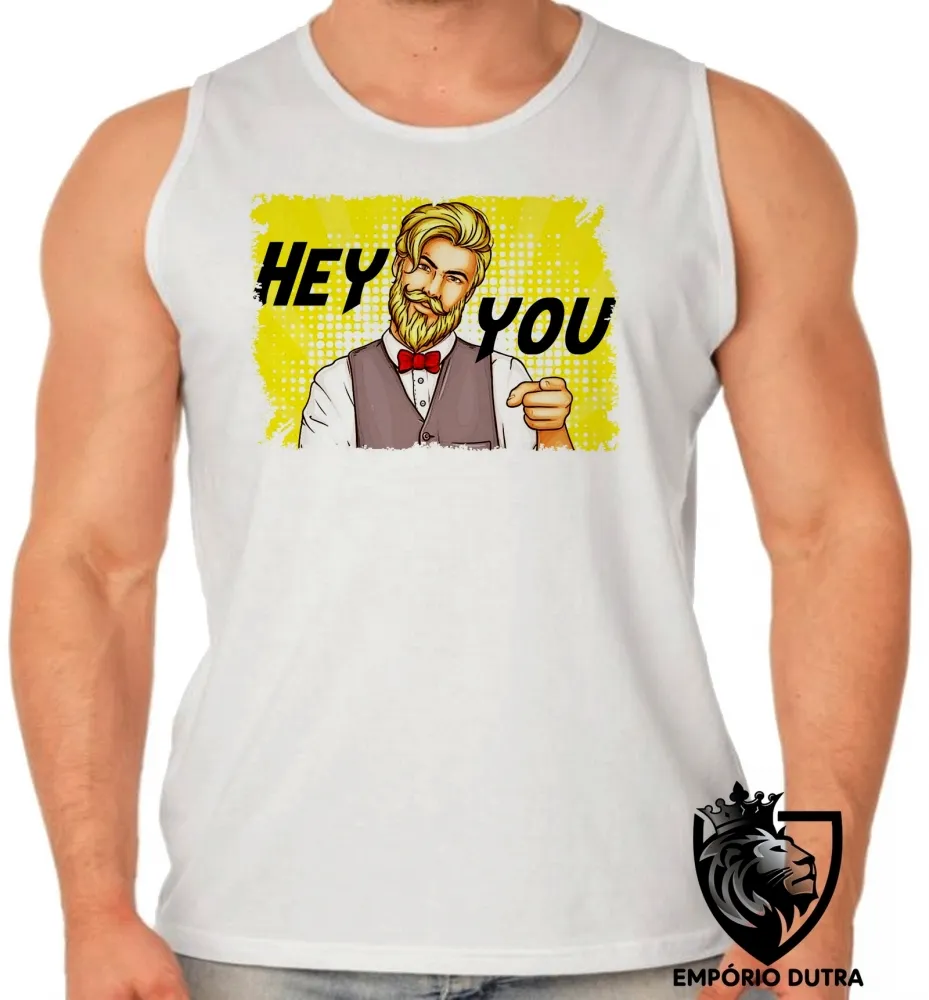 Camiseta Regata adulto ou infantil Hipster Hey you Imagem
