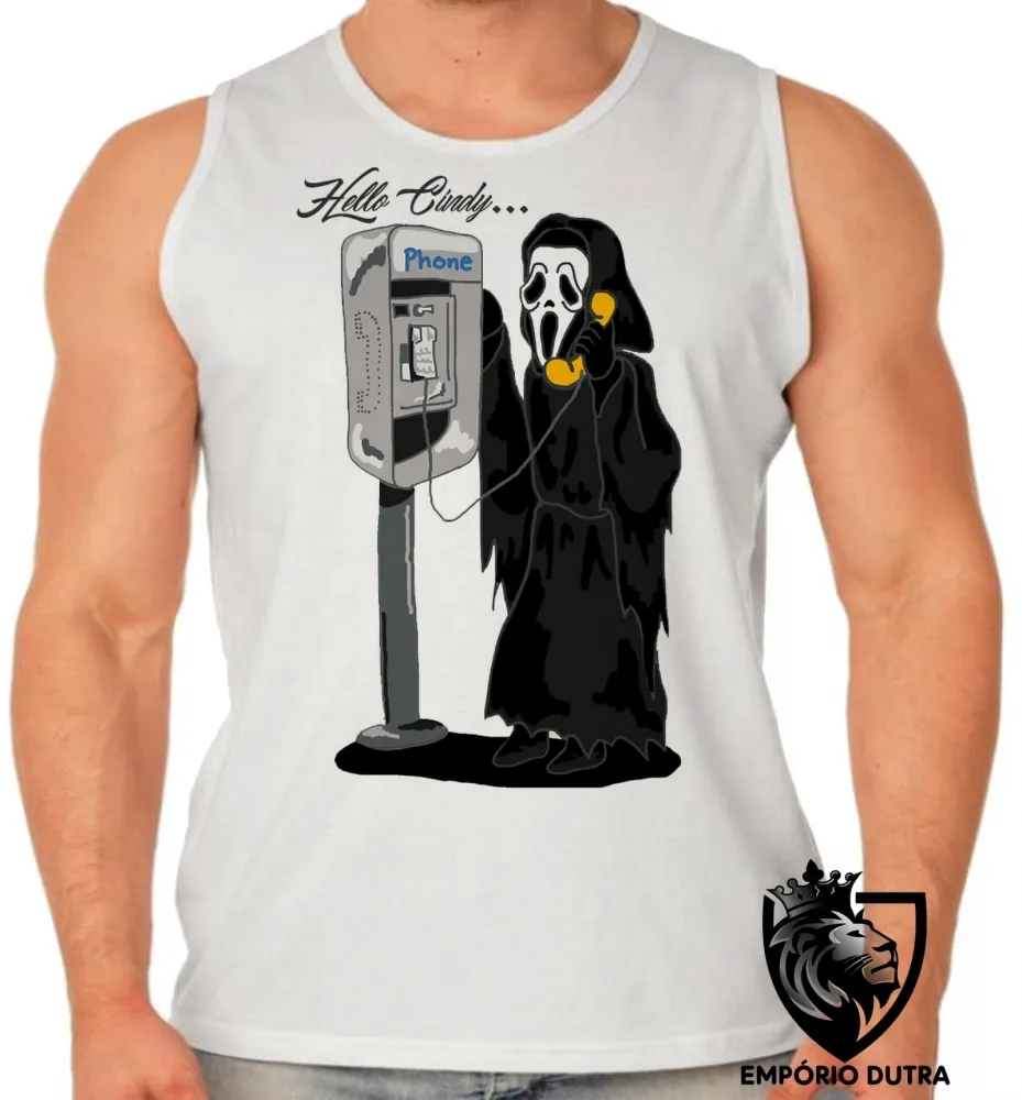 Camiseta Regata adulto ou infantil Pânico terror Hello Cindy telefone orelhão