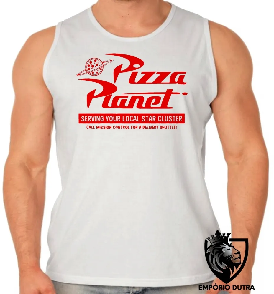 Camiseta Regata adulto ou infantil Pizza Planet toy story