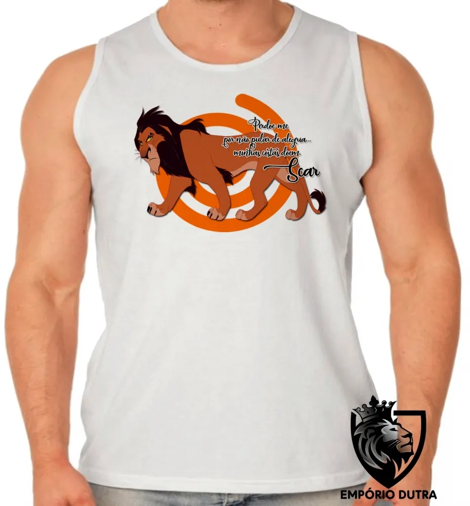 Camiseta Regata adulto ou infantil Rei Leão Lion King Scar minhas costas doem