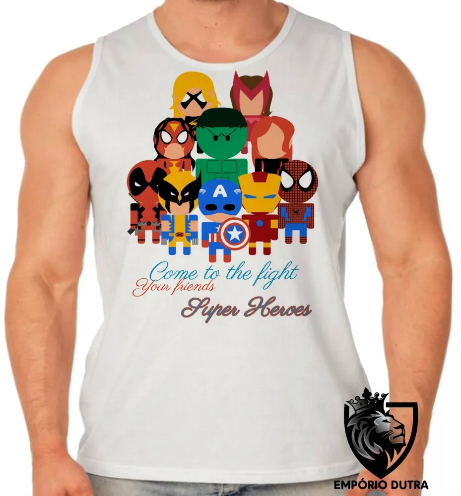 Camiseta Regata adulto ou infantil Super Heroes marvel geek vingadores avengers