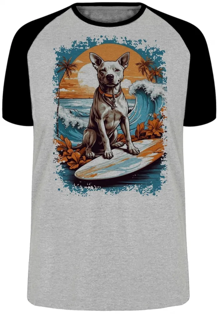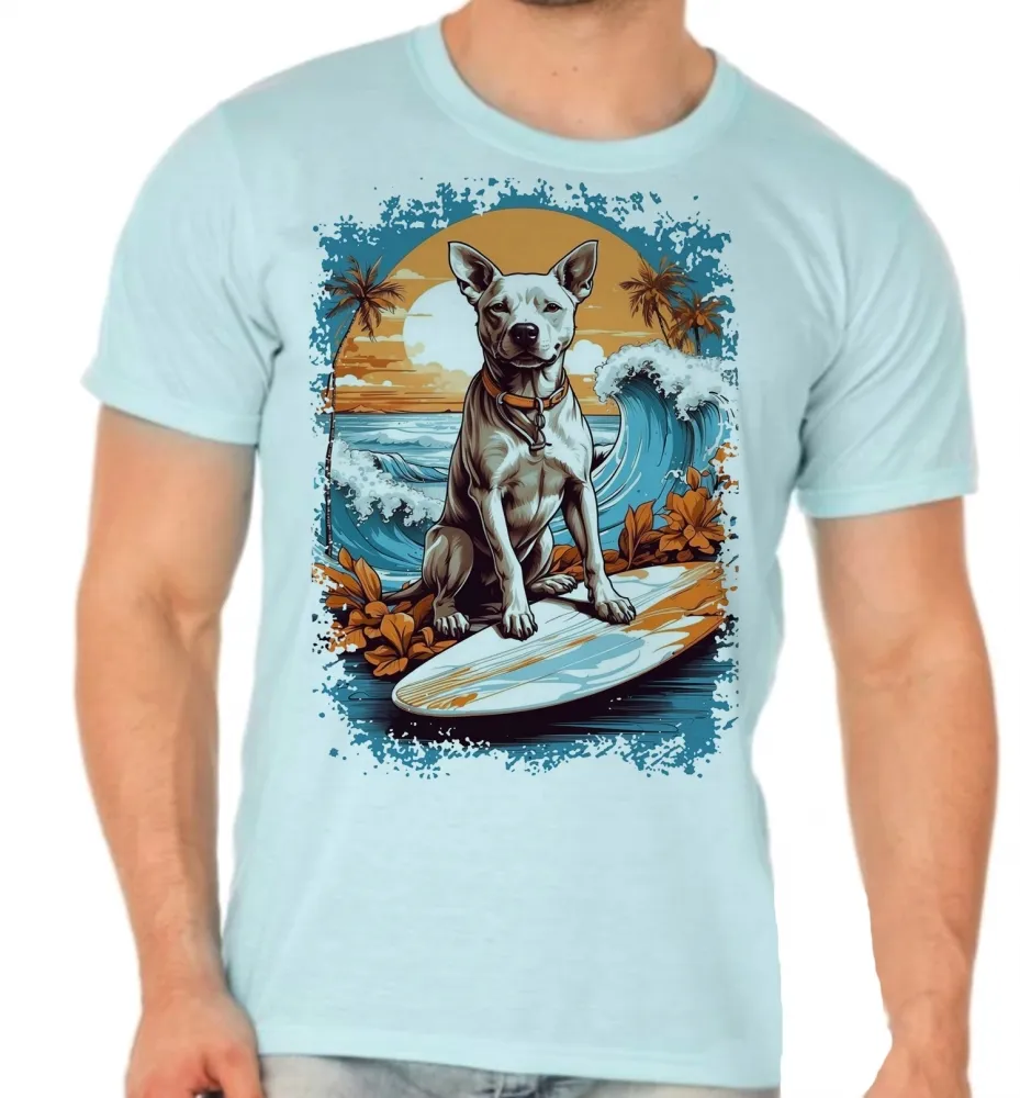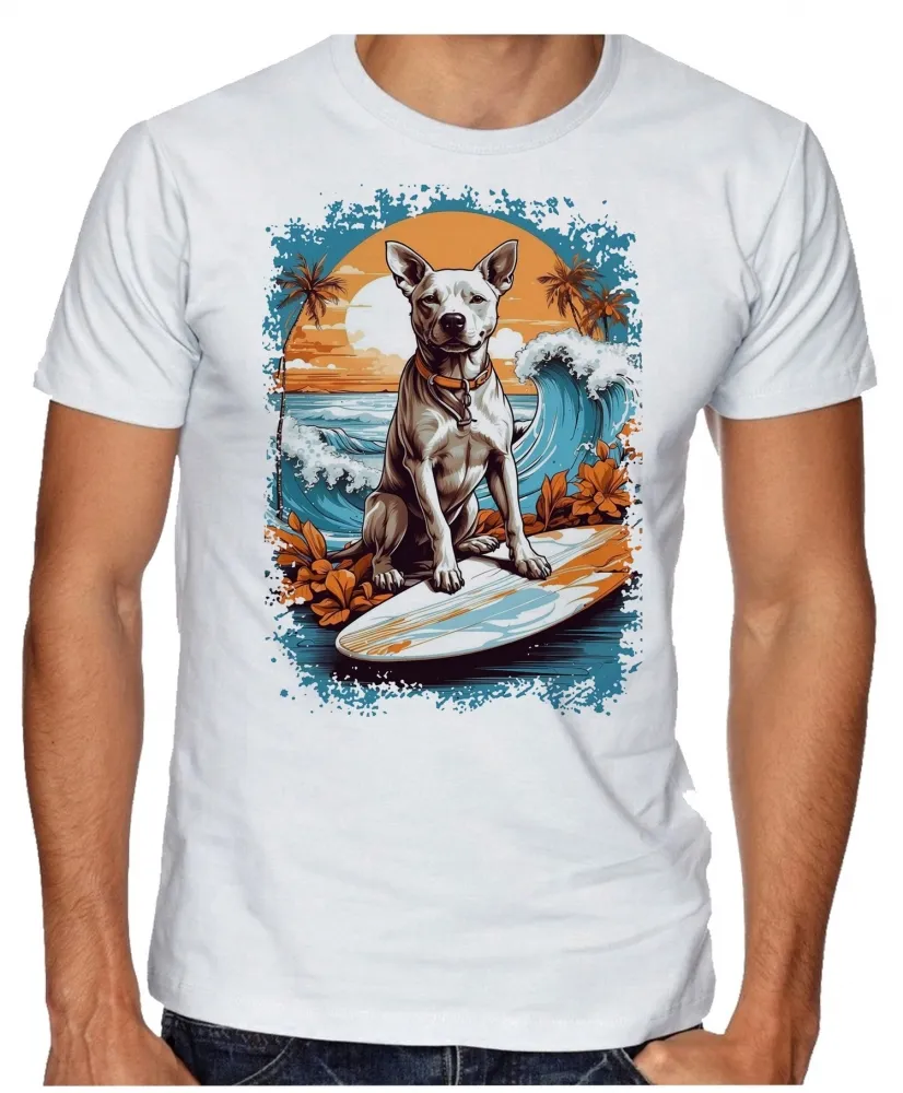 Camiseta adulto ou infantil cachorro pit bull praia surf