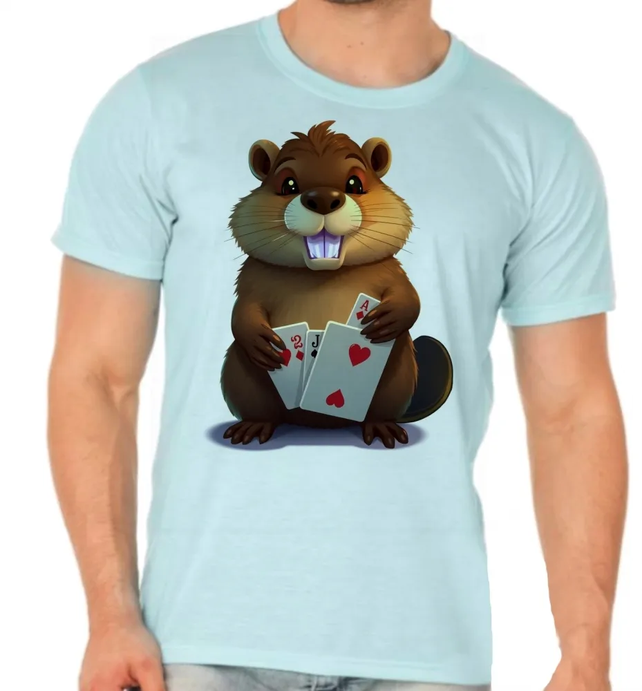 Camiseta adulto ou infantil Castor poker esquilo carta rato roedor canastra