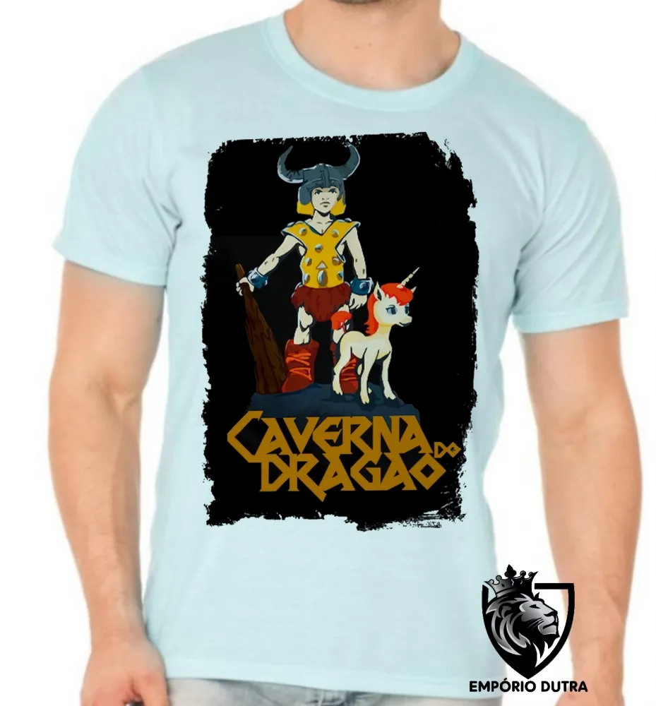 Camiseta adulto ou infantil caverna do dragão dungeons dragons unicornio