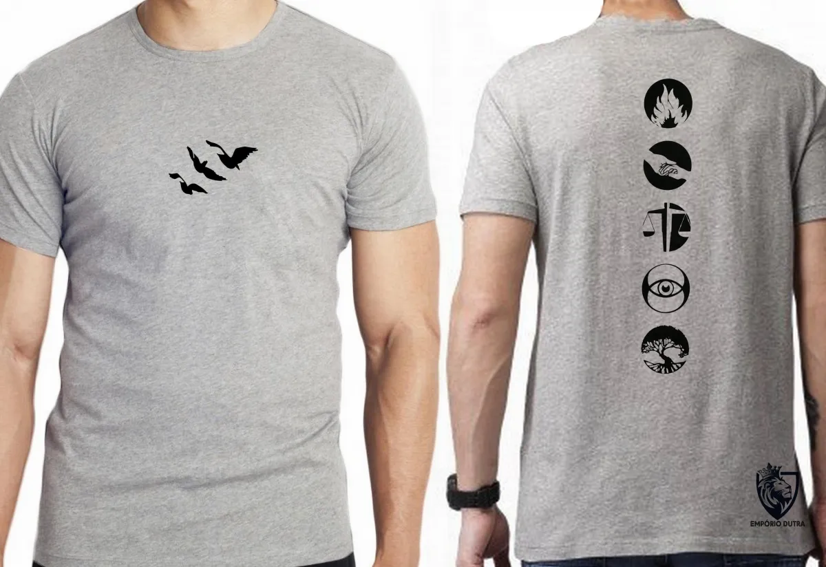 Camiseta confeccionada em malha fria, 100% Poliéster Fio 30/1 penteado;