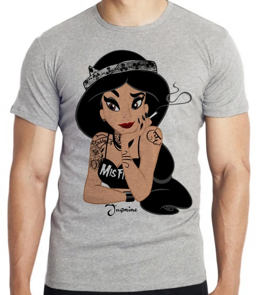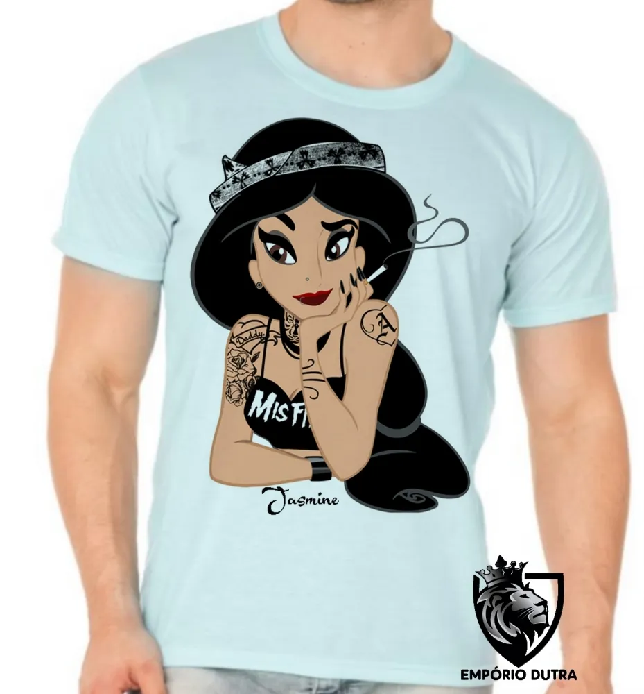 Camiseta adulto ou infantil Jasmine disney presa fumando
