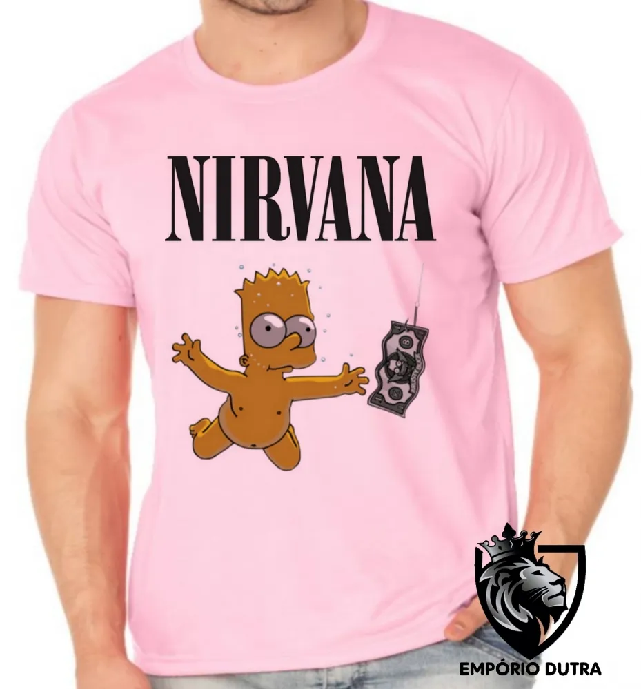 Camiseta adulto ou infantil Nirvana Bart Simpsons dolar