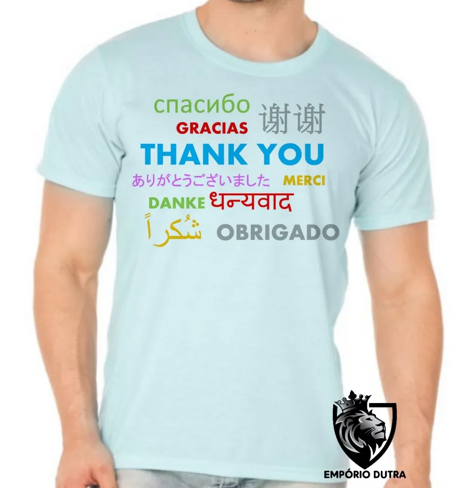 Camiseta adulto ou infantil obrigado várias línguas