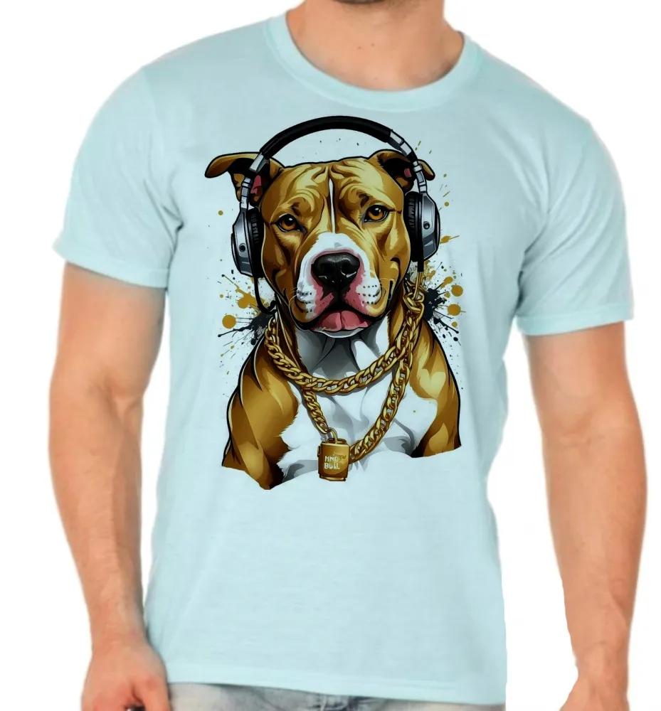 Camiseta adulto ou infantil Pitt bull cachorro corrente dourada