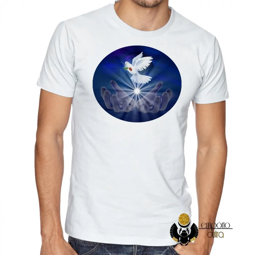 Camiseta adulto ou infantil Pomba da paz espirita Jesus amor Kardec