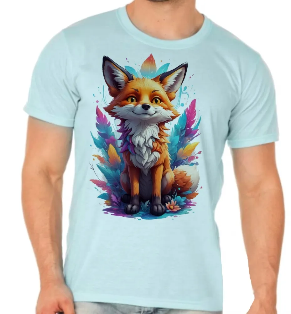 Camiseta adulto ou infantil Raposa fox colorida Imagem