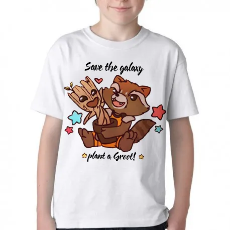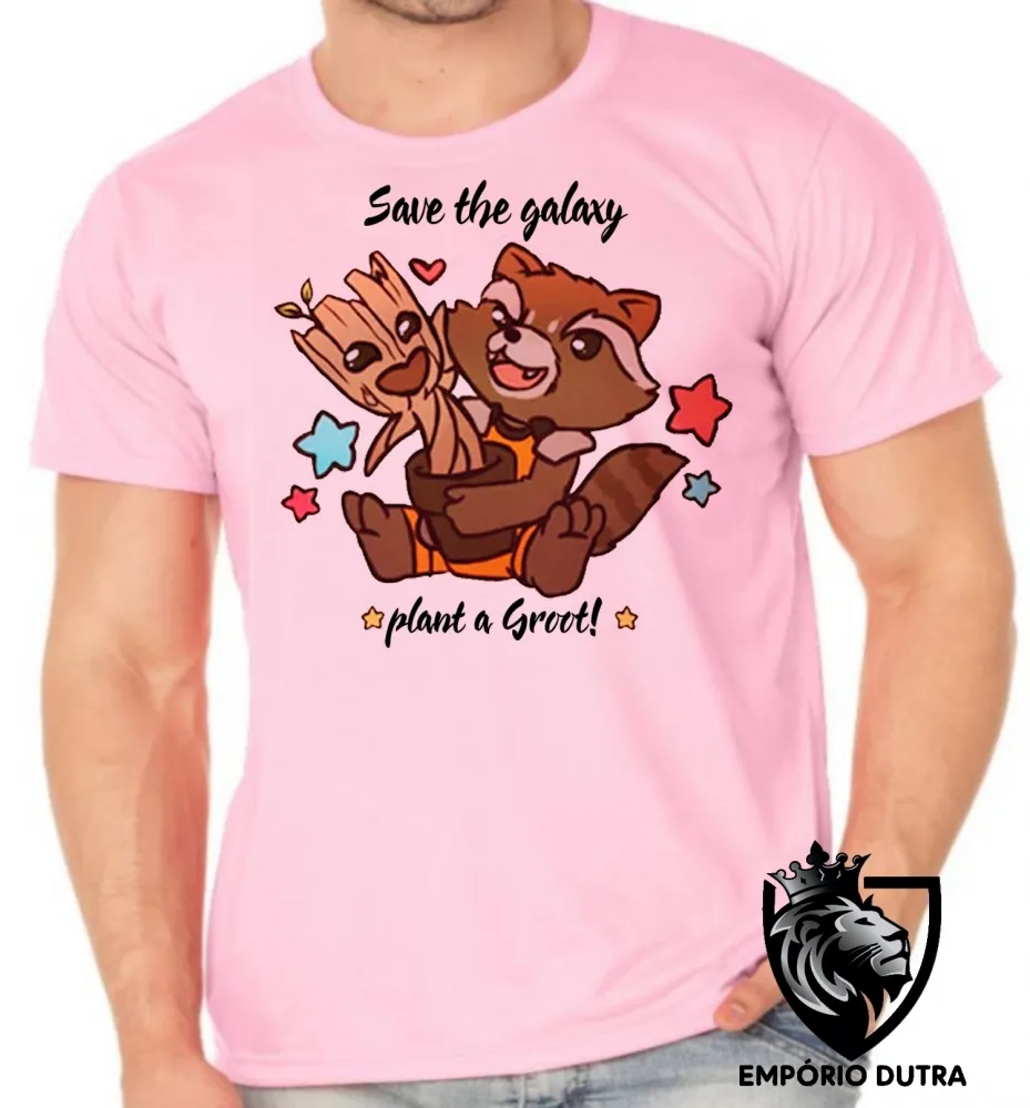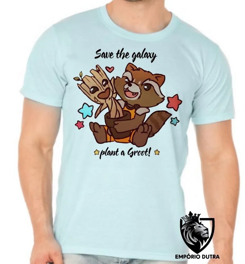 Camiseta adulto ou infantil Salve galáxia plante Groot rocket