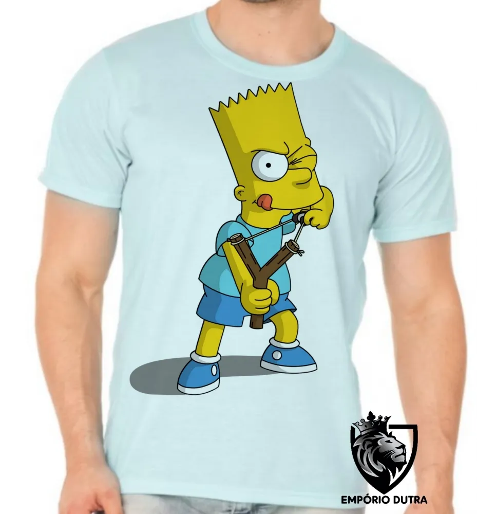 Camiseta adulto ou infantil Simpsons Bart Estilingue filho homer