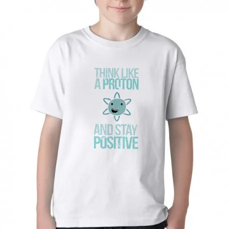 Camiseta adulto ou infantil Think like a proton atomo energia