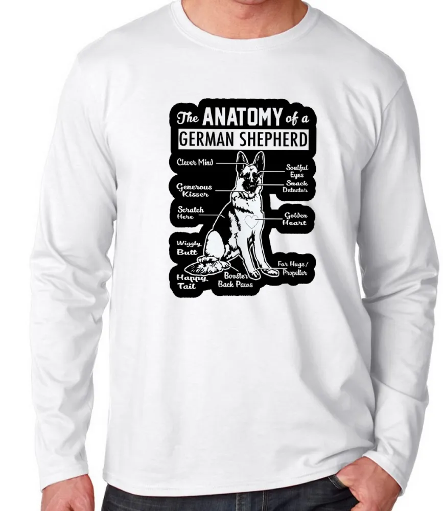 Camiseta manga longa Infantil ou Adulto Anatomia Pastor Alemão German Sheperd