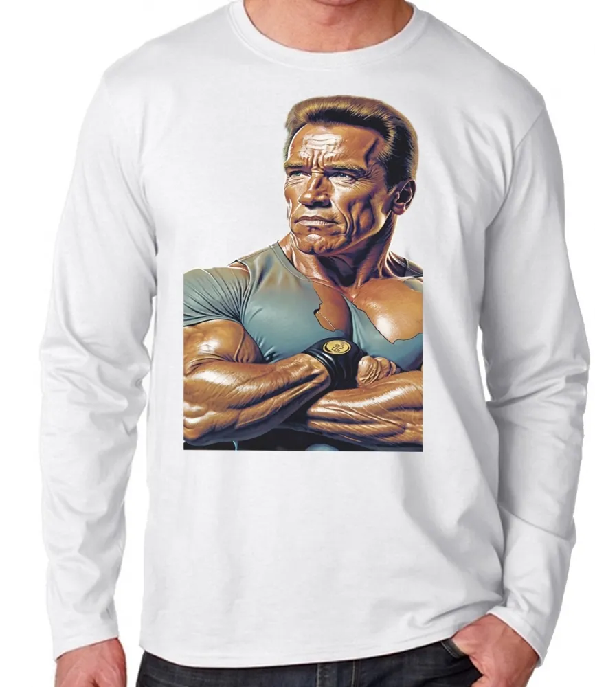 Camiseta manga longa Infantil ou Adulto arnold schwarzenegger musculação