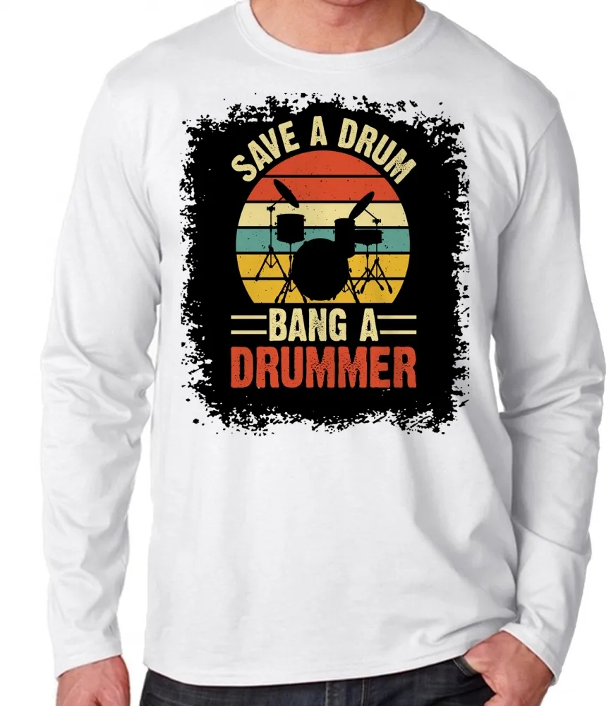 Camiseta manga longa Infantil ou Adulto Bateria baterista rock musica