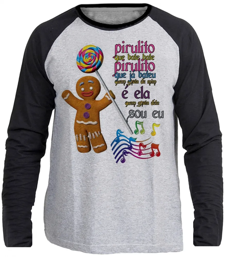 Camiseta manga longa Infantil ou Adulto Biscoito shrek cantando pirulito que bate bate