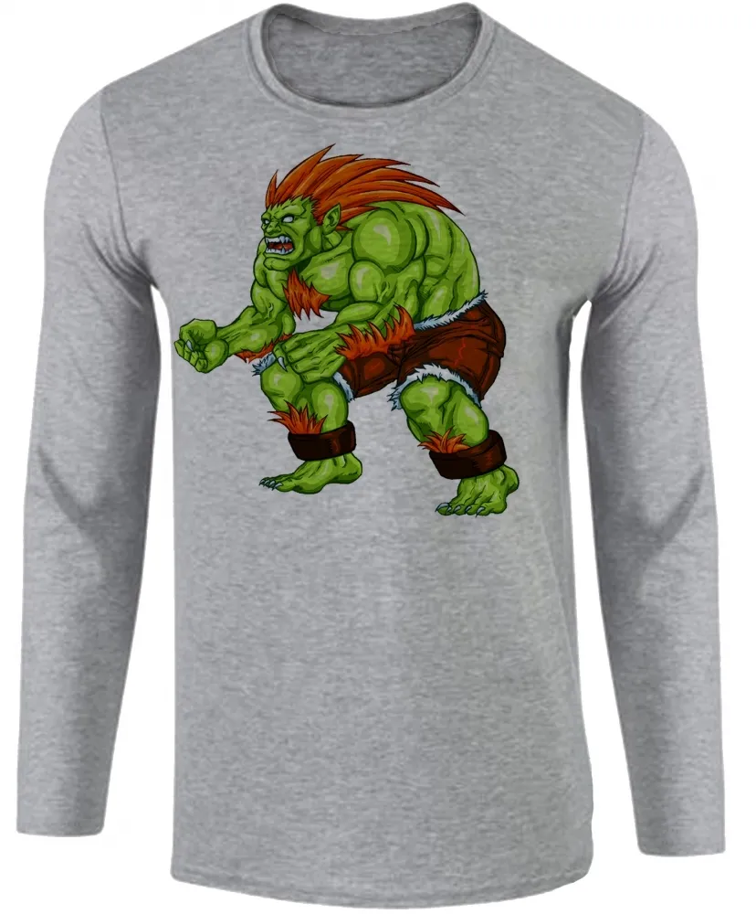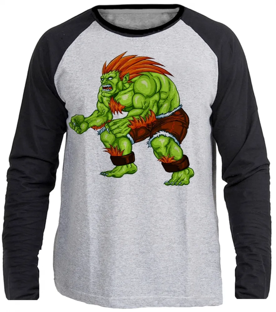 Camiseta manga longa Infantil ou Adulto Blanka Street Fighter Brasil jogo antigo