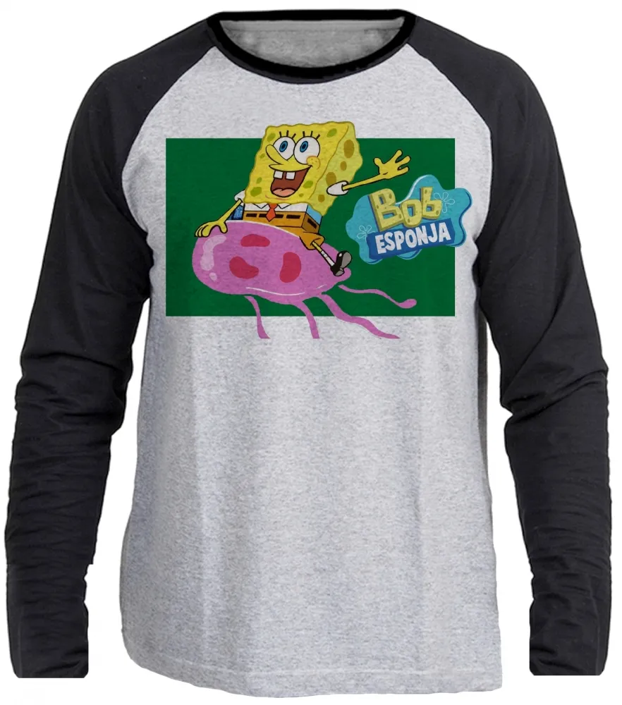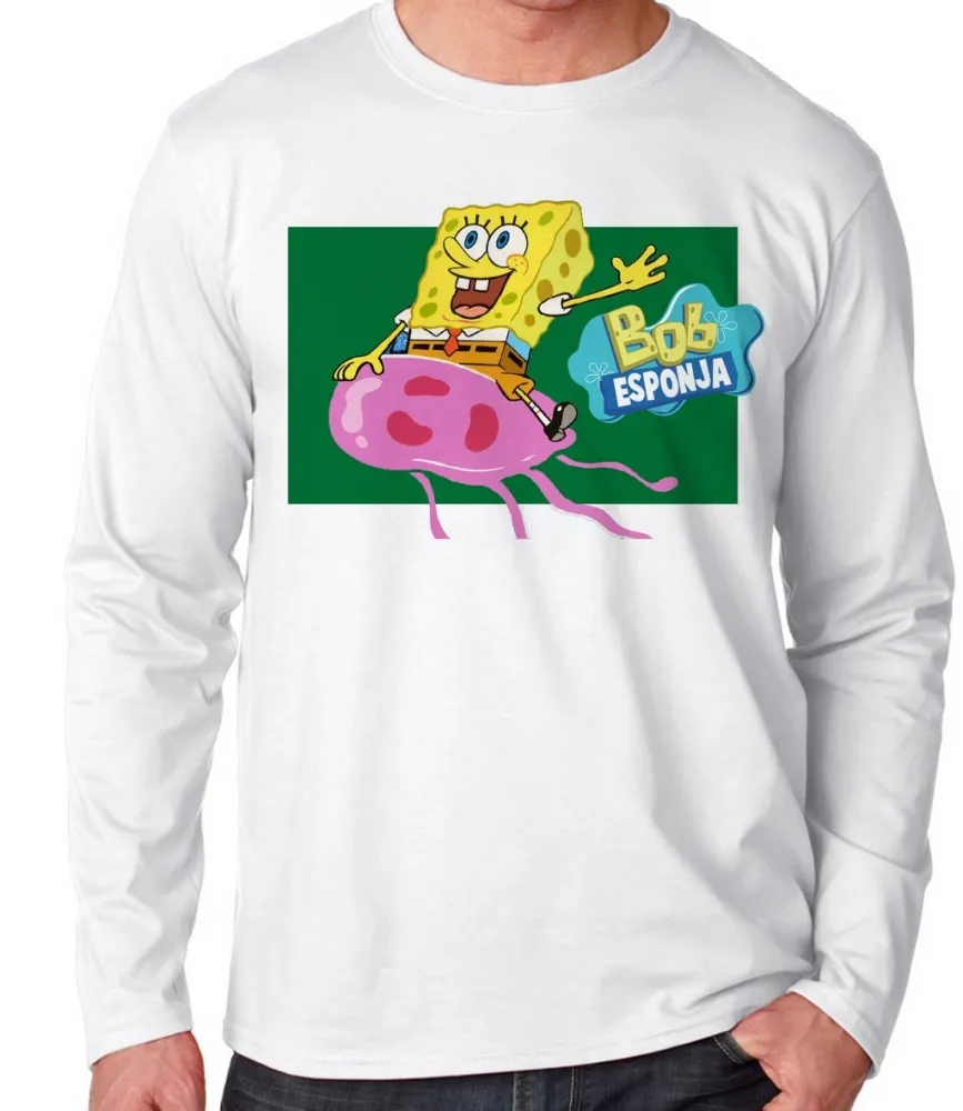 Camiseta manga longa Infantil ou Adulto Bob Esponja e água viva desenho