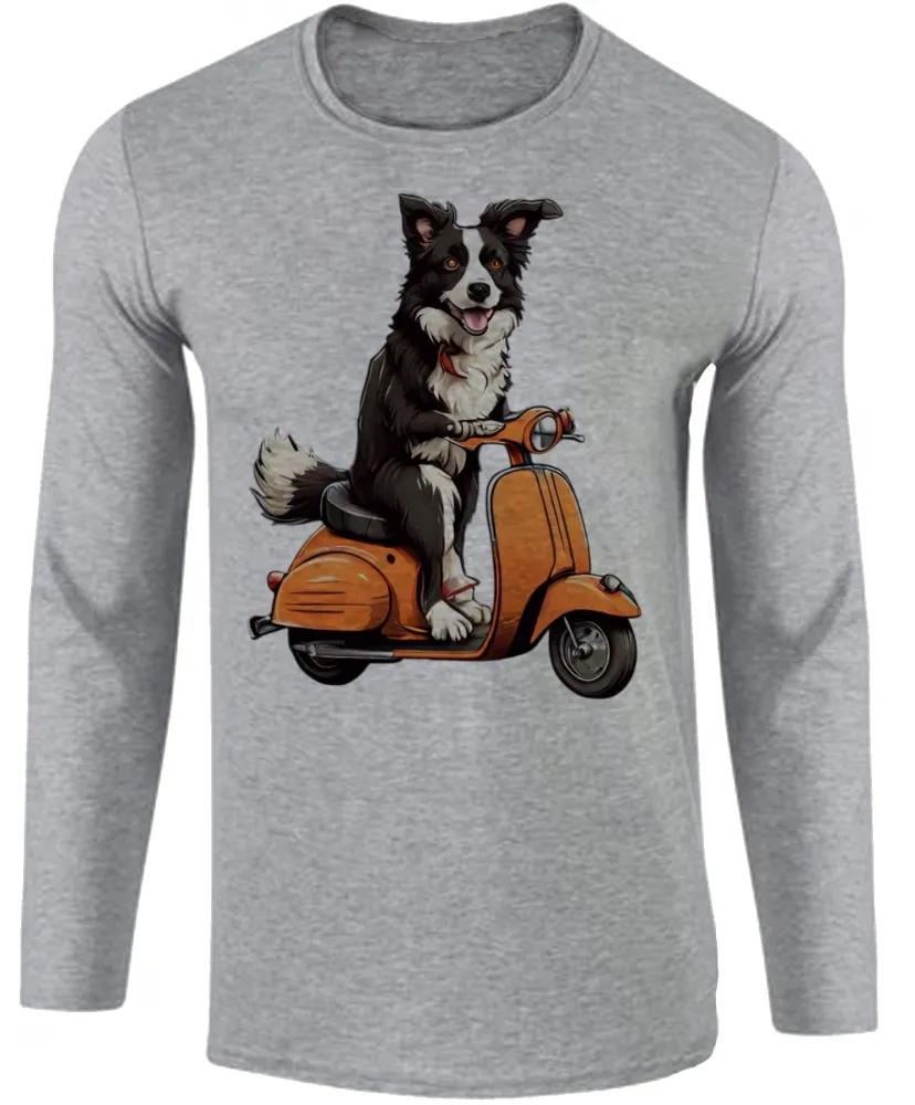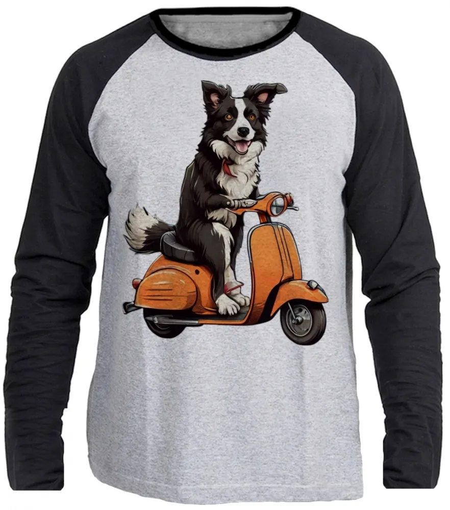 Camiseta manga longa Infantil ou Adulto Cachorro boder collie lambreta