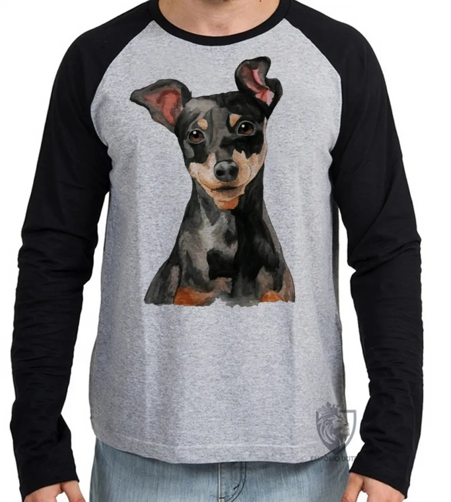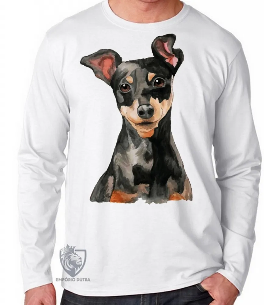 Camiseta manga longa Infantil ou Adulto cachorro cão dog pinscher raça pequena