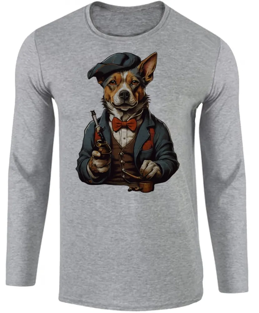 Camiseta manga longa Infantil ou Adulto Cachorro detetive fumando