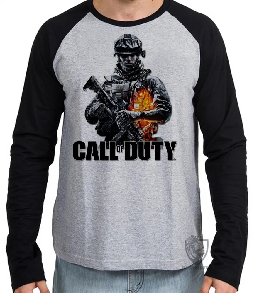 Camiseta manga longa Infantil ou Adulto Call of Duty soldado jogo game