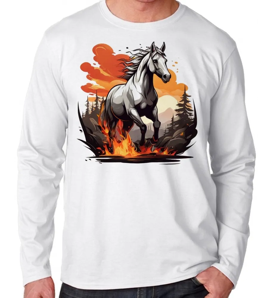 Camiseta manga longa Infantil ou Adulto Cavalo de fogo crioulo raça