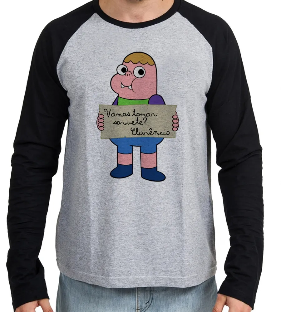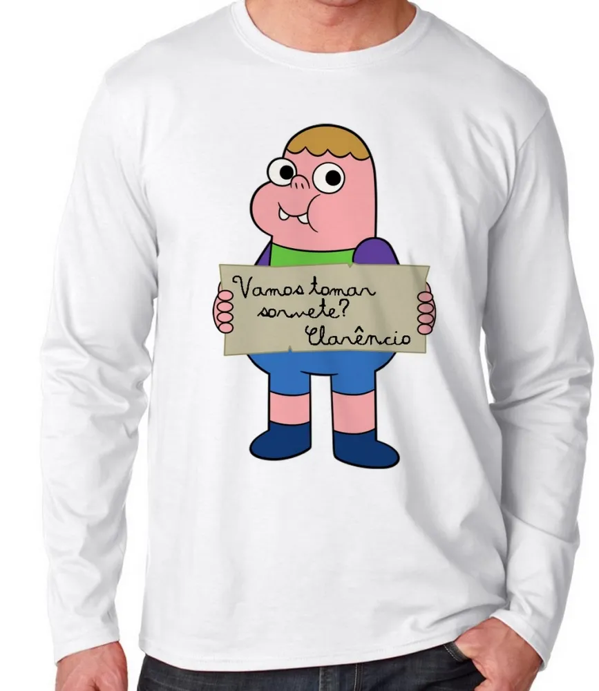 Camiseta manga longa Infantil ou Adulto clarencio o otimista desenho