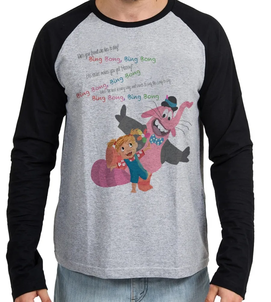 Camiseta manga longa Infantil ou Adulto Divertidamente Elefante Bing Bong