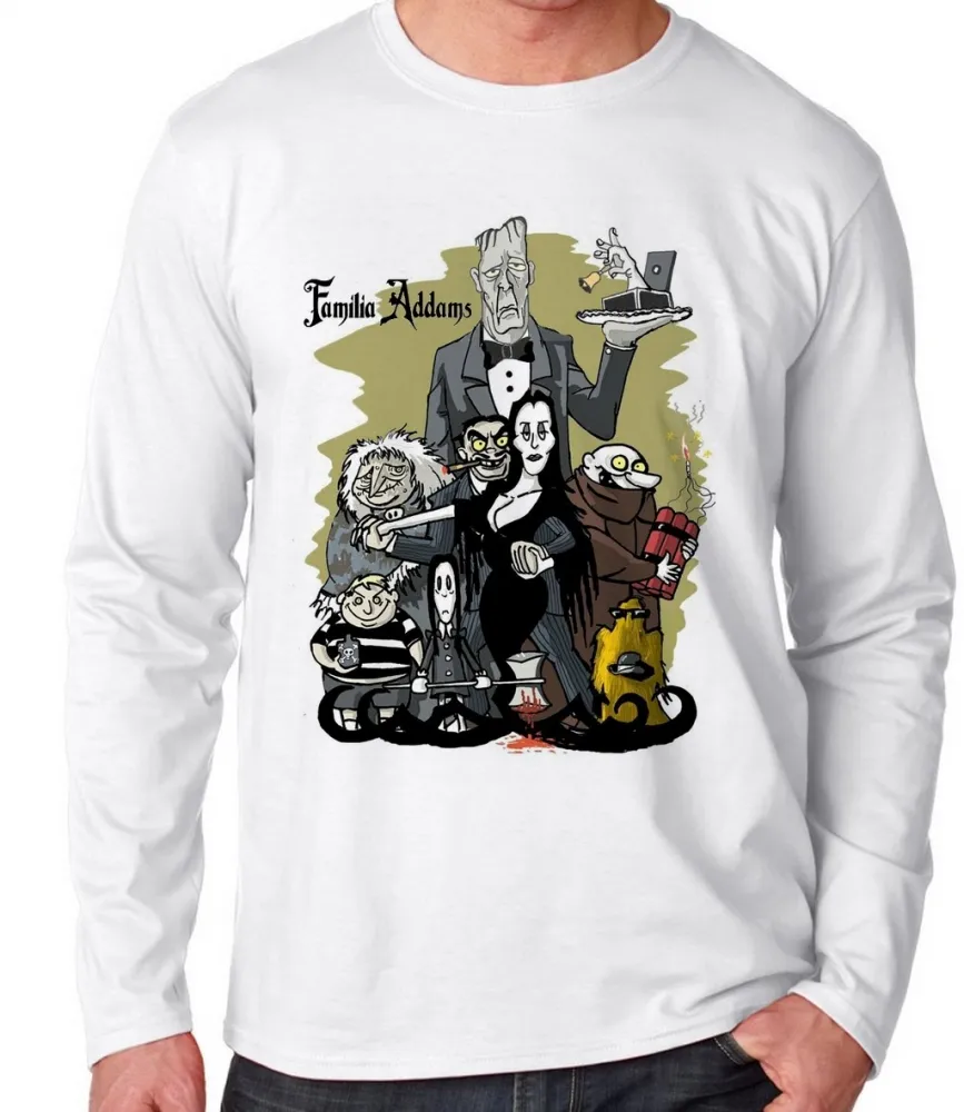 Camiseta manga longa Infantil ou Adulto Família Addams pintura seriado
