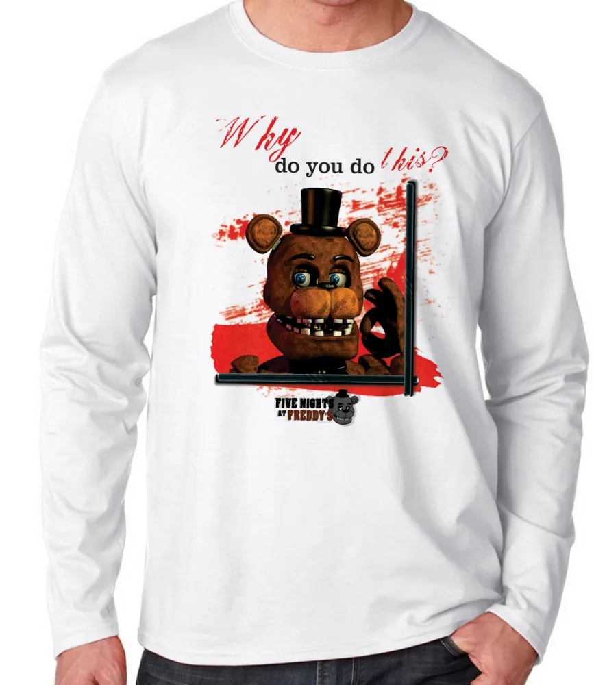 Camiseta manga longa Infantil ou Adulto Five Night at Freddys Five Urso