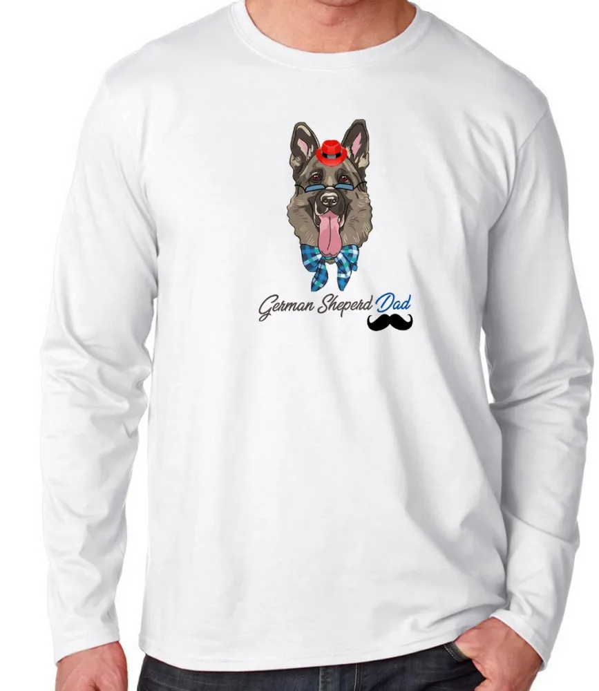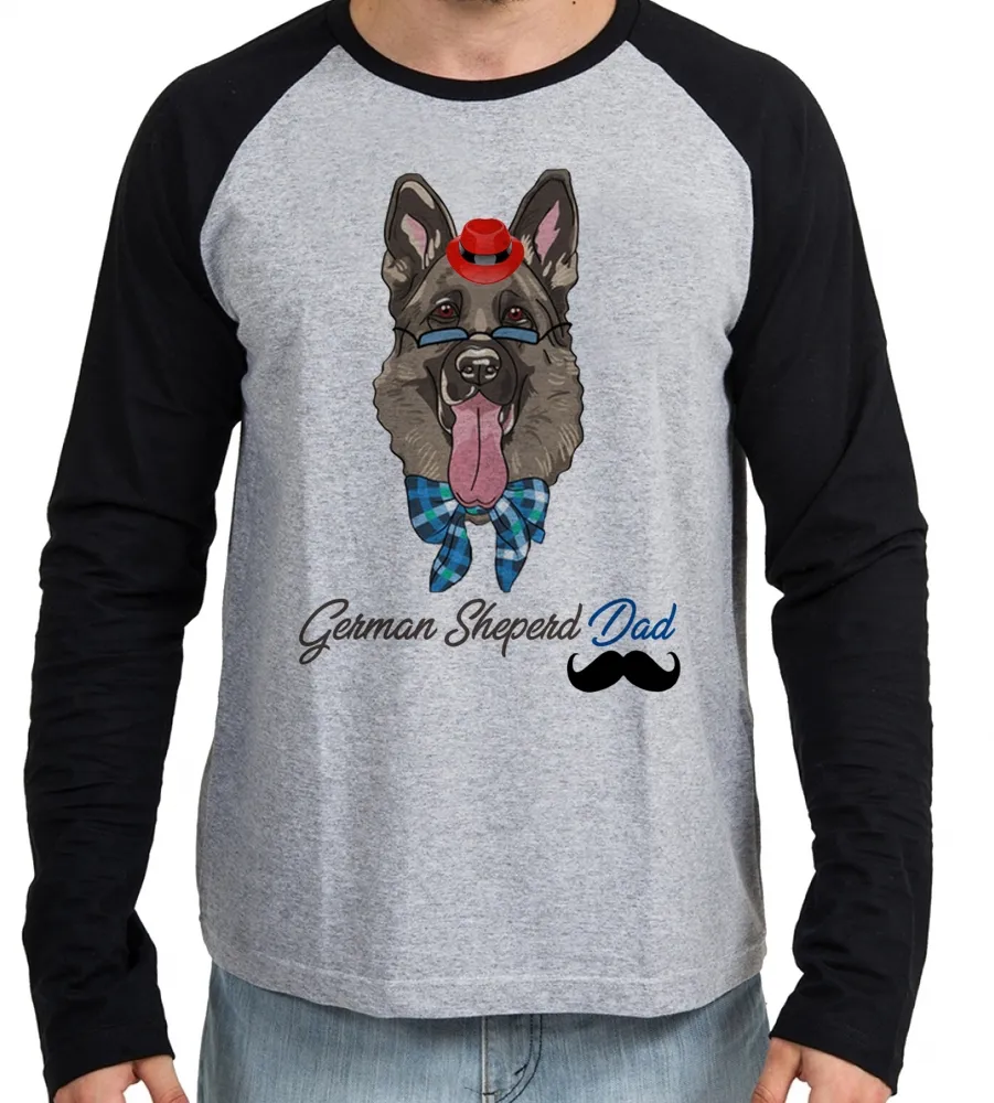 Camiseta manga longa Infantil ou Adulto German Sheperd Dad pastor alemão