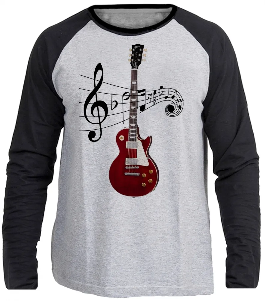 Camiseta manga longa Infantil ou Adulto Guitarra contra baixo musica