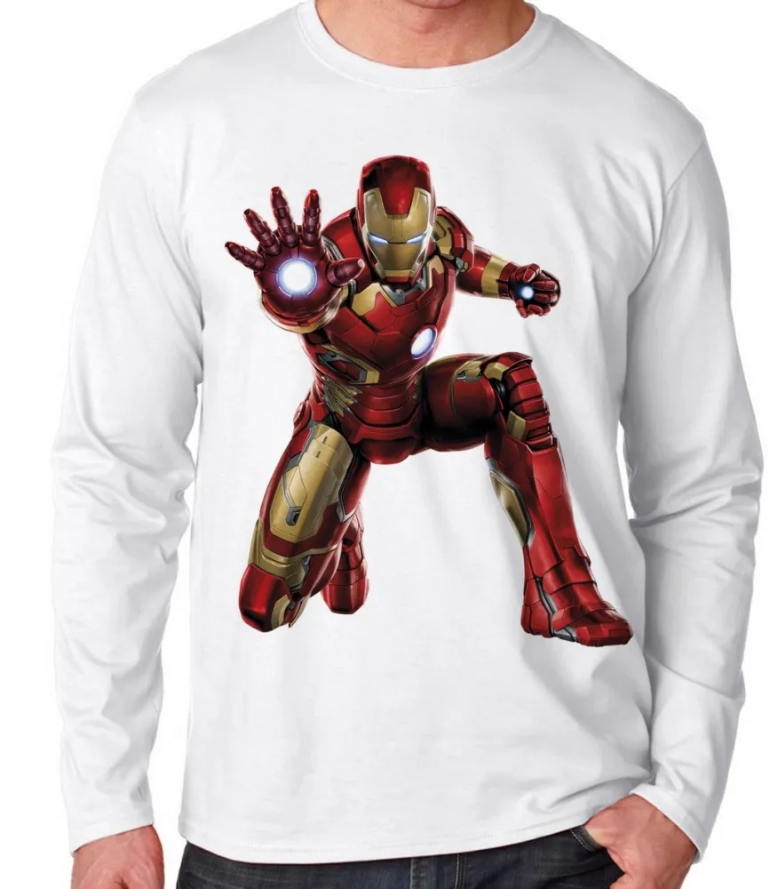 Camiseta manga longa Infantil ou Adulto homem de ferro iron man marvel