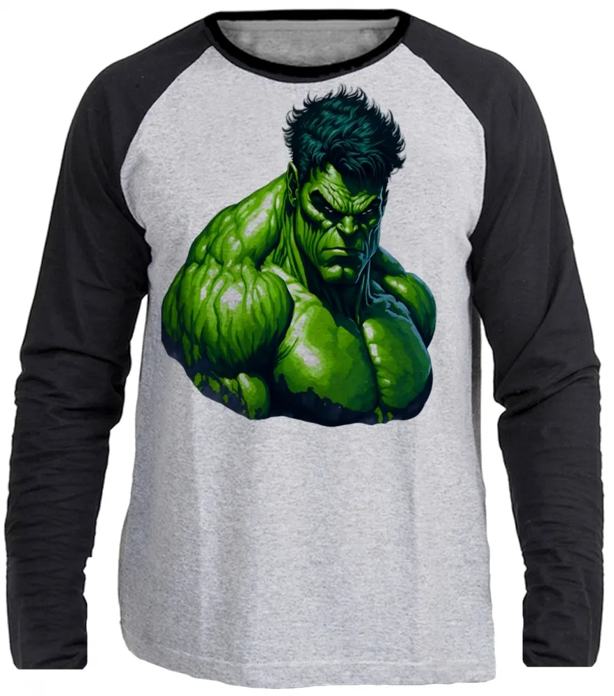 Camiseta manga longa Infantil ou Adulto Hulk vingadores super heroi verdão