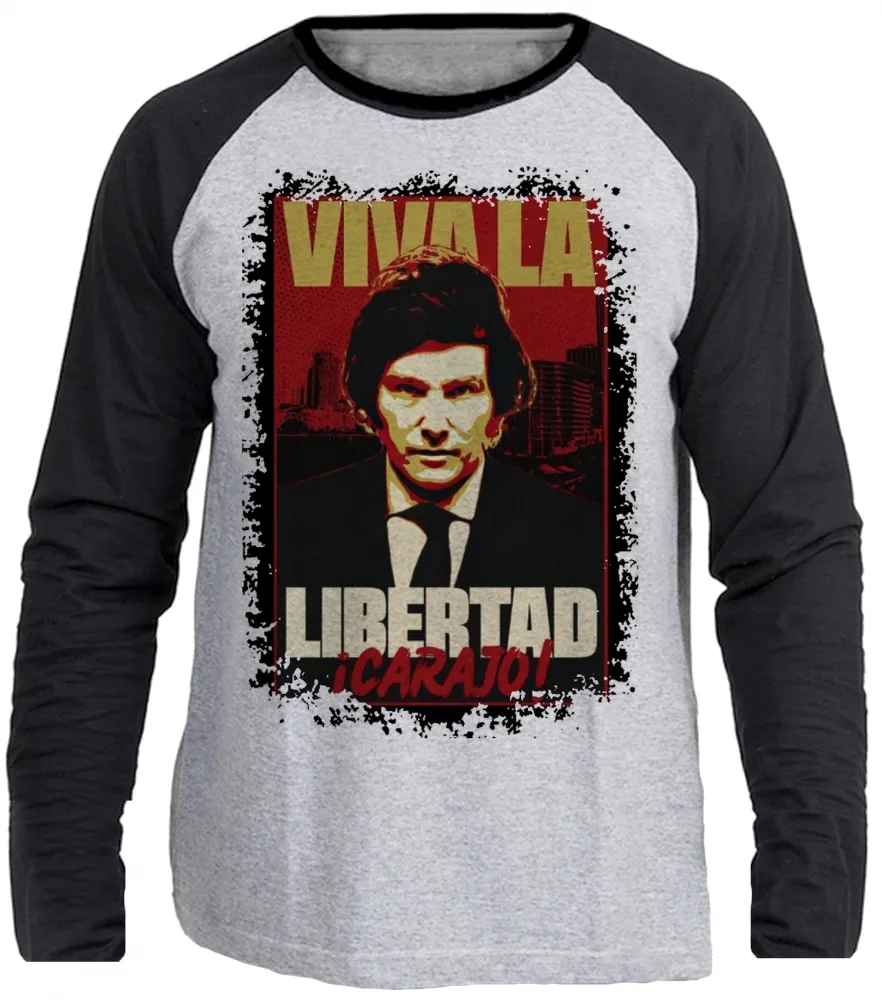 Camiseta manga longa Infantil ou Adulto Javier Milei Liberdade