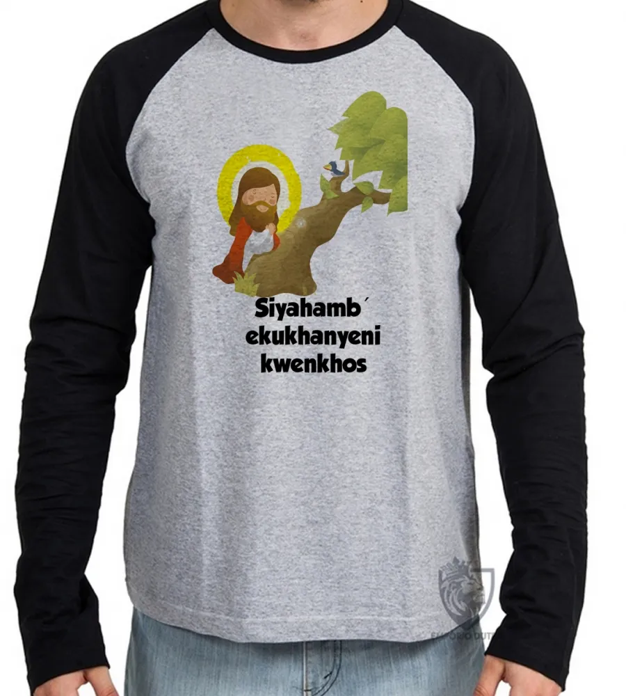 Camiseta manga longa Infantil ou Adulto Jesus siyahamba
