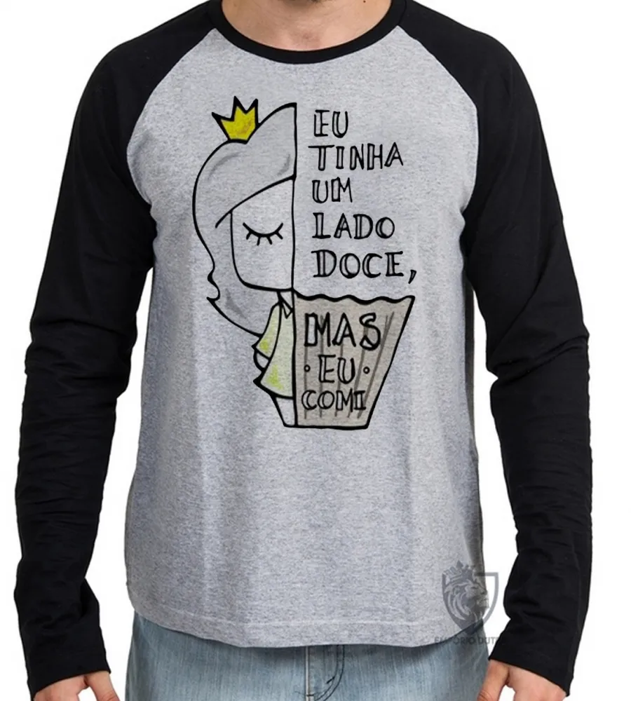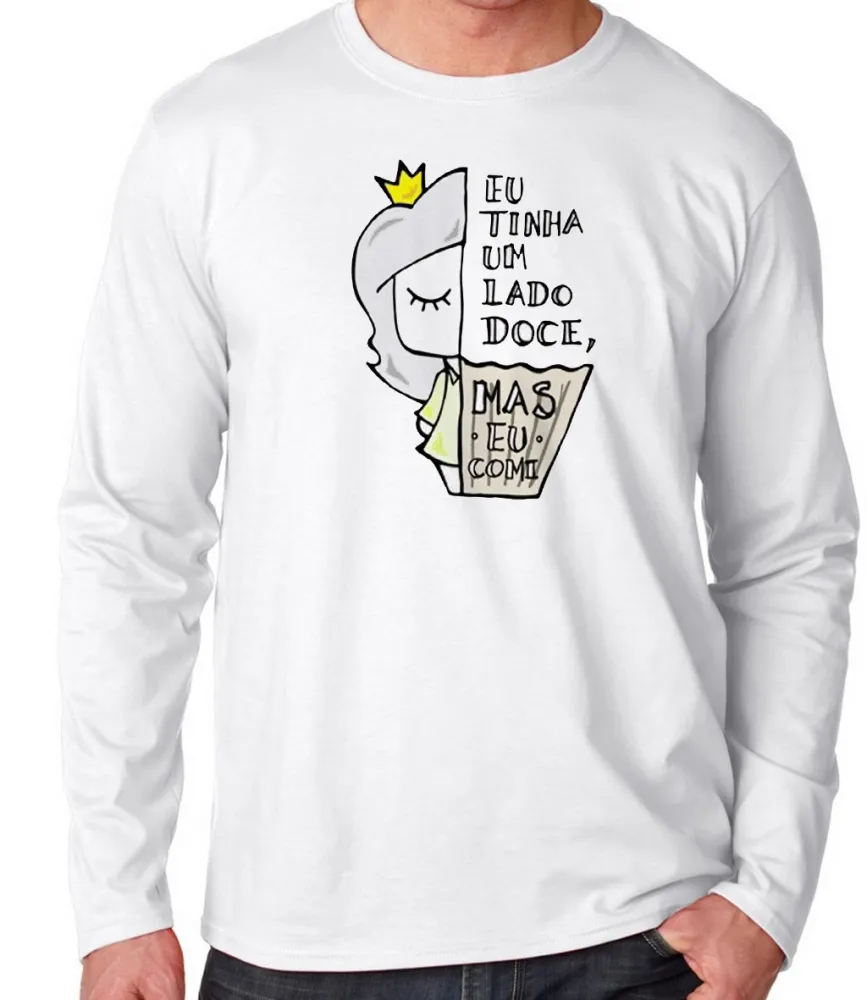 Camiseta manga longa Infantil ou Adulto Lado doce comi cupcake