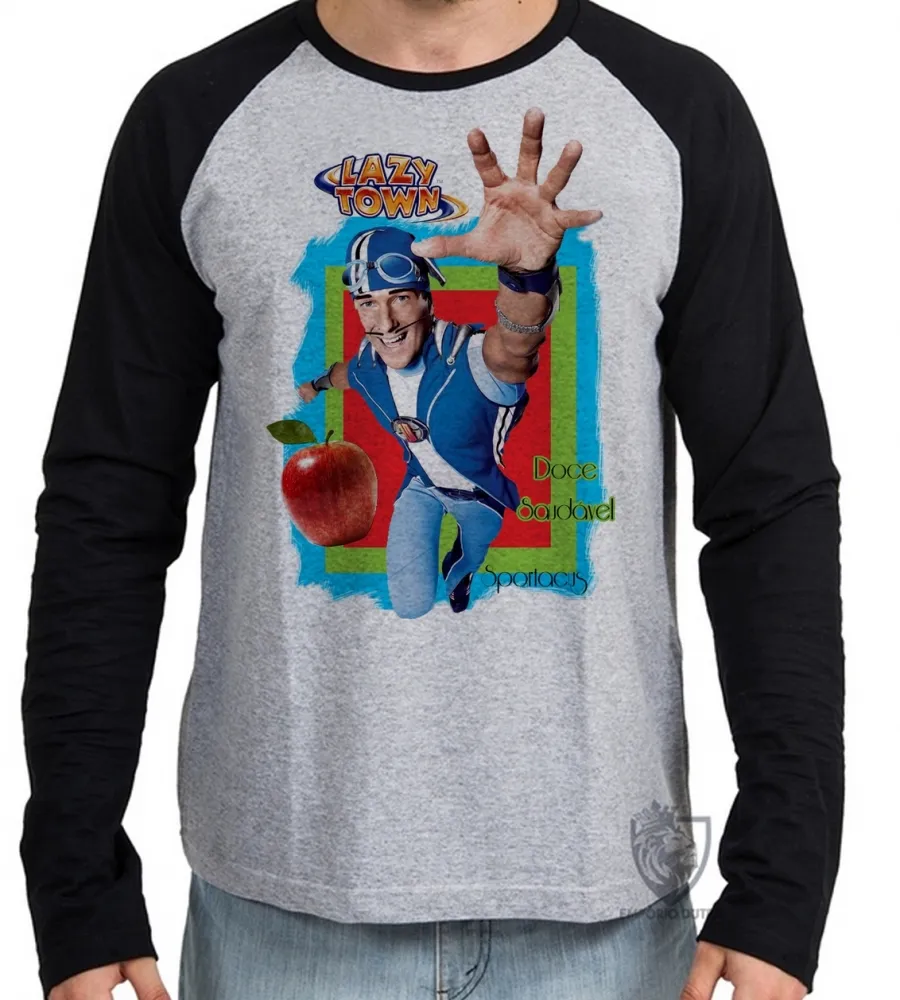 Camiseta manga longa Infantil ou Adulto Lazy Town Sportacus maçã saudavel