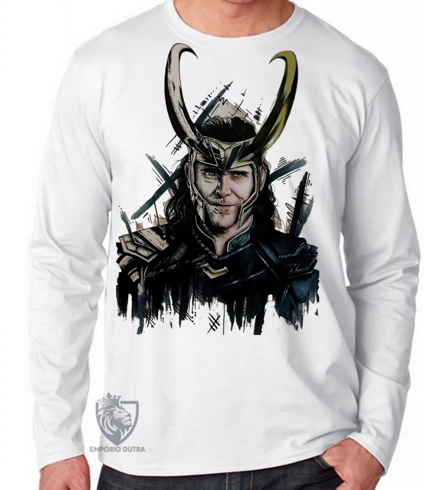 Camiseta manga longa Infantil ou Adulto loki vilão thor vingadores avengers