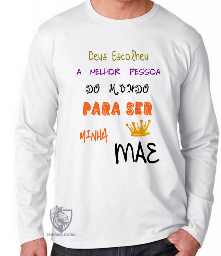 Camiseta manga longa Infantil ou Adulto Mãe Deus escolheu presente dia das mães